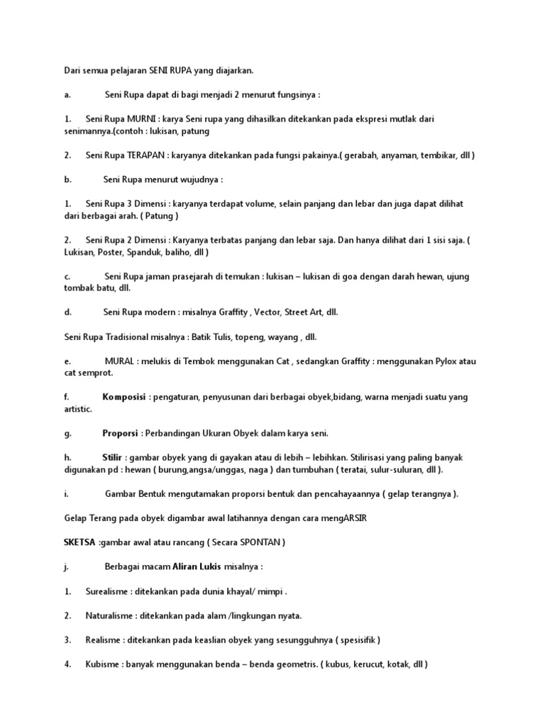 Materi Lengkap Pengertian Sejarah Dan Jenis Seni Rupa