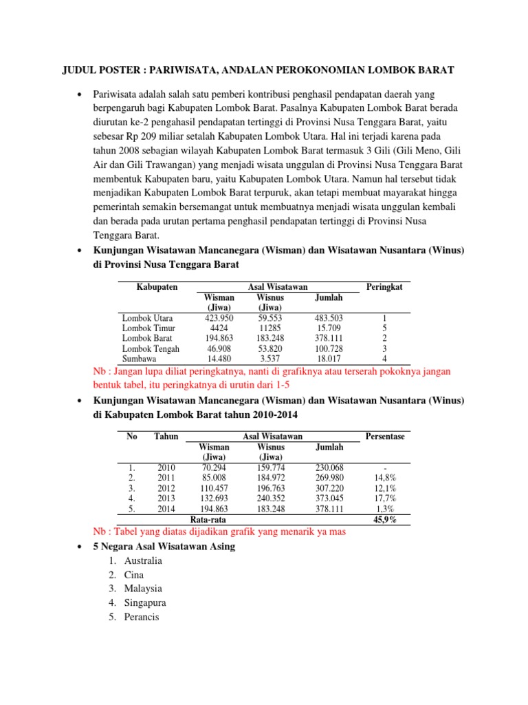 Rencana Induk Pariwisata Berkelanjutan Pulau Lombok 2015 2019